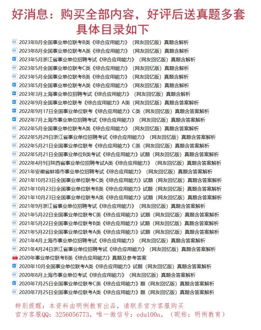 资料名称: 2024年浙江大学行政专员、技术专员招聘职业能力综合应用能力题库送真题