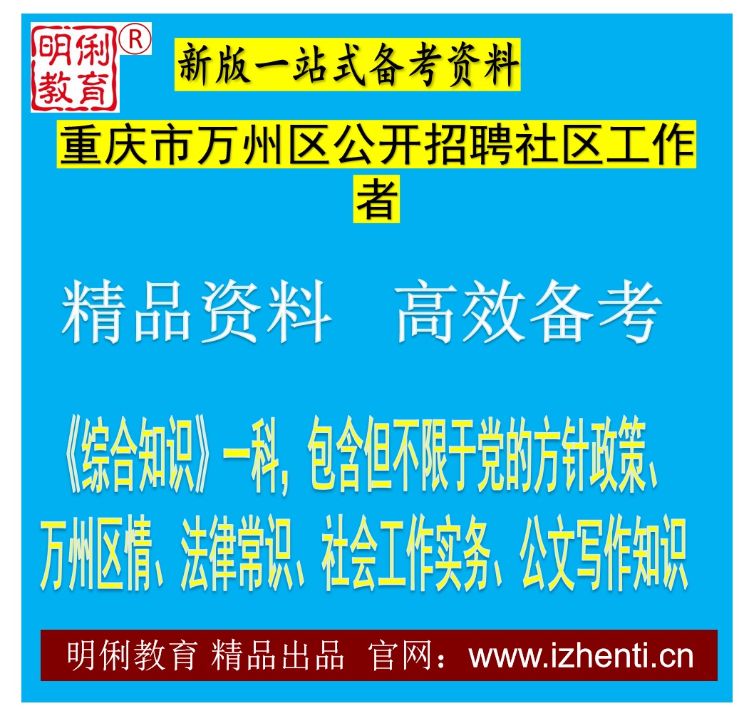 1.笔试为闭卷考试,实行百分制(不包括加分)。笔试科目为《综合知识》一科,包含但不限于党的方针政策、万州区情、法律常识、社会工作实务、公文写作知识等。