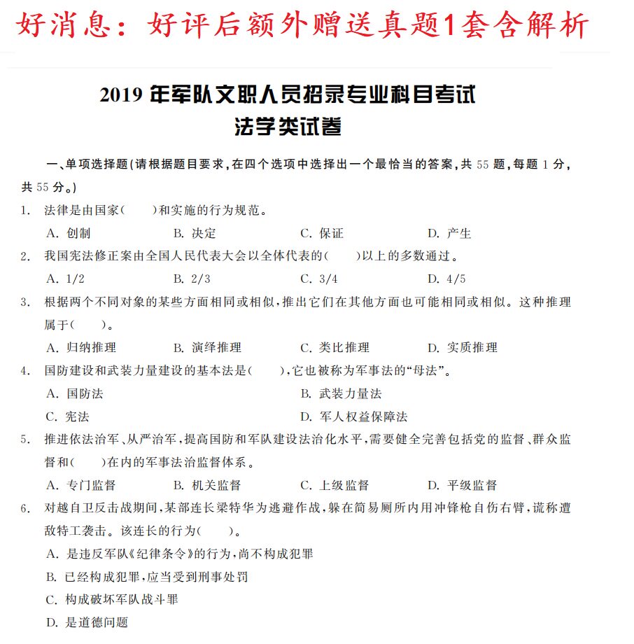 2022年军队文职人员全军统一招聘考试法学类专业科目法学题库资料真题