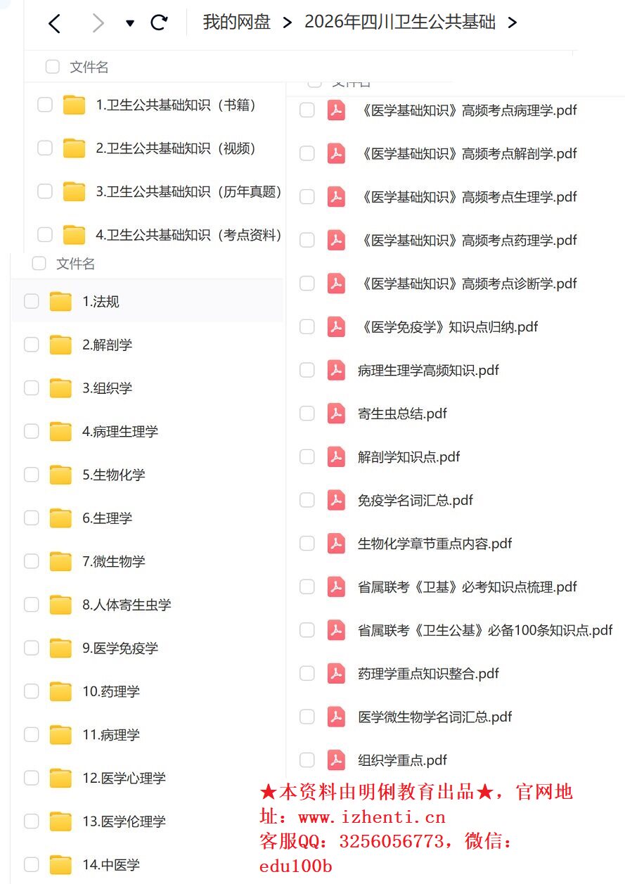 资料名称: 2026年四川省公开招聘事业单位卫生公共基础不含中医题库真题