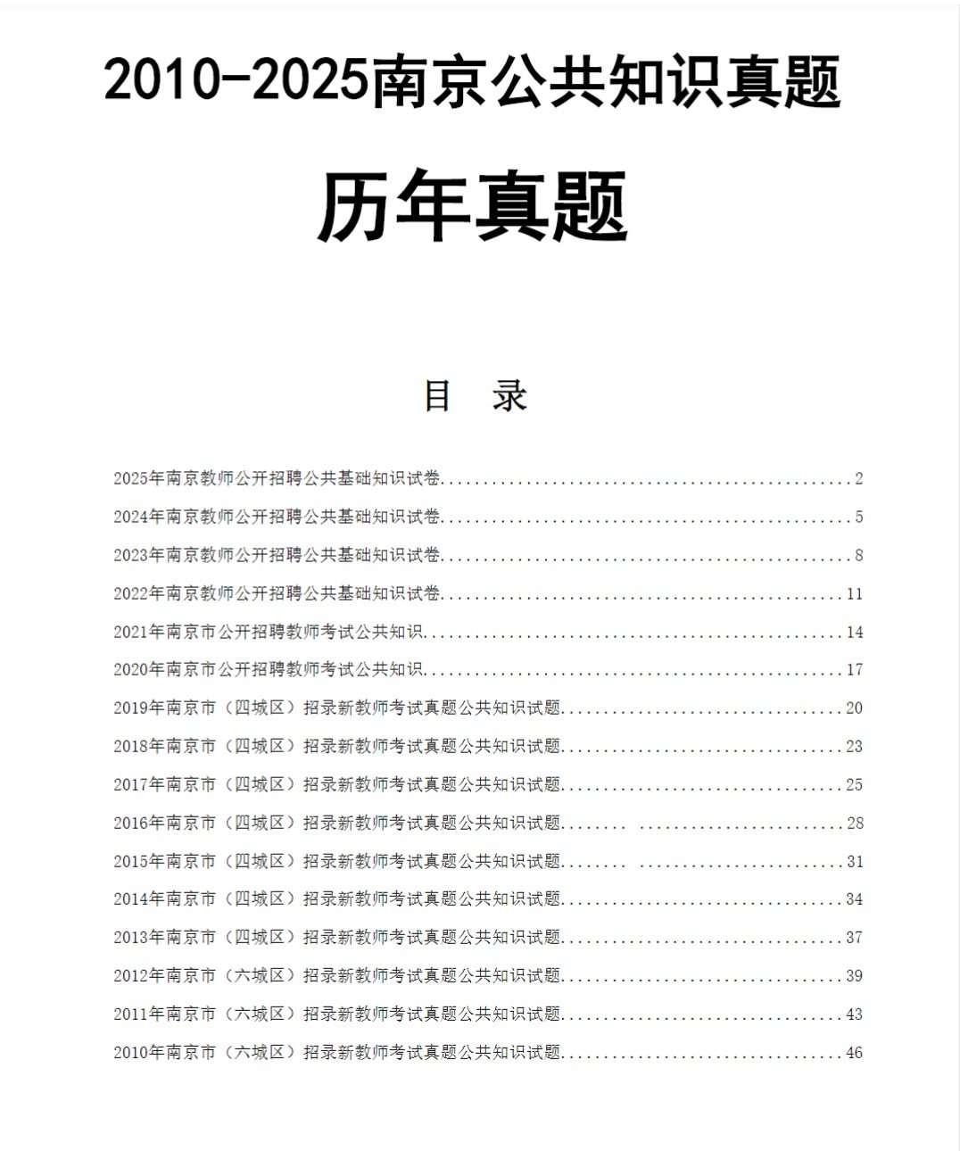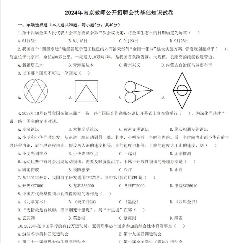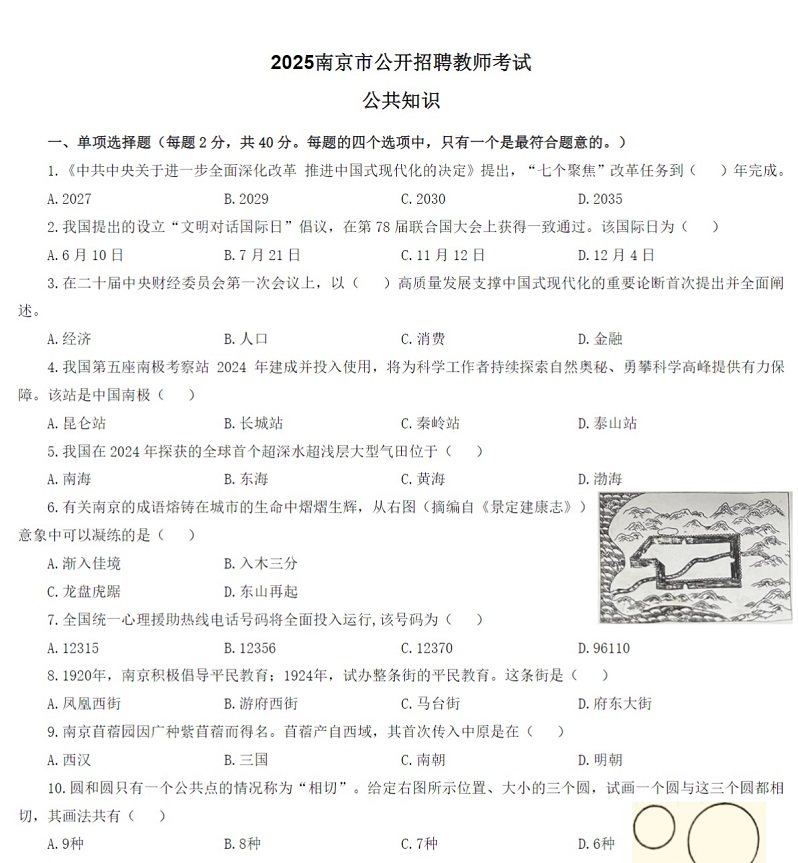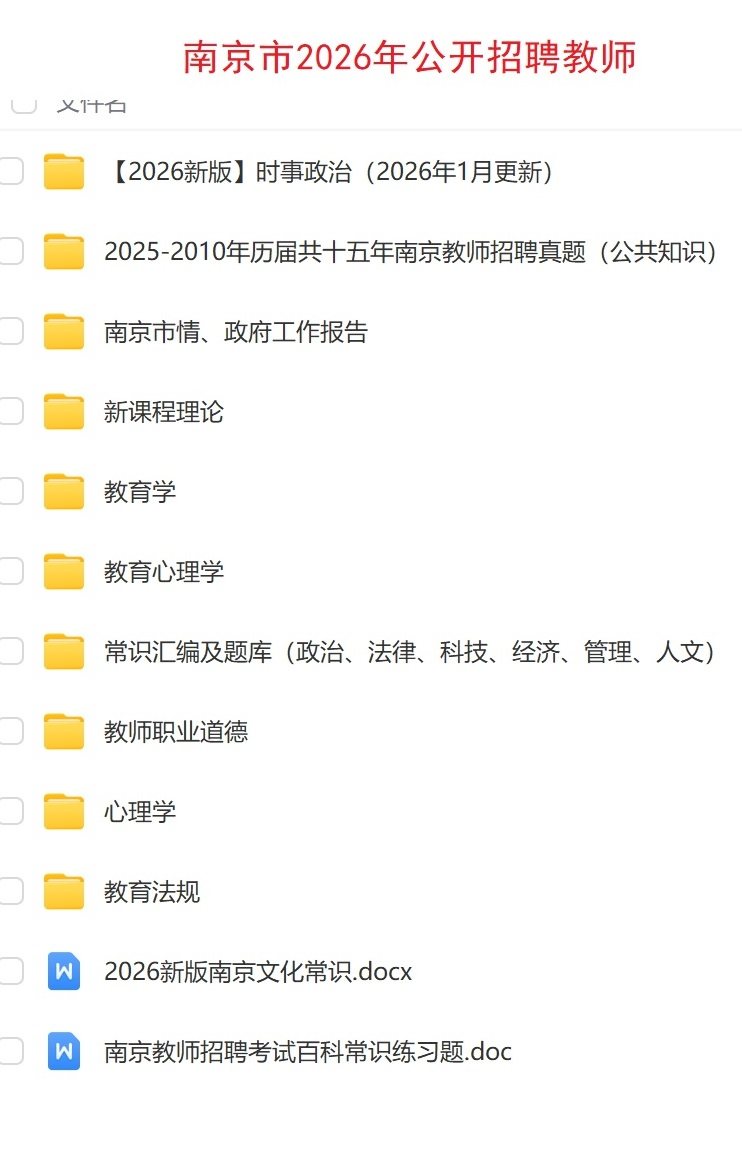 资料名称: 2026江苏南京市教育局中小学幼儿园新教师招聘公共知识题库历年真题