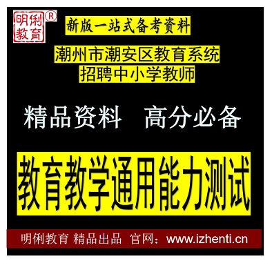 2.笔试内容为教育教学通用能力测试,主要测试应聘人员从事中小学教育教学应该具备的基本能力与基本素质。 1.本次招聘实行网络报名。应聘人员请于2024年7月8日9:00至7月12日16:00登录“2024年潮州市潮安区教育系统暑期公开招聘中小学教师报名系统”