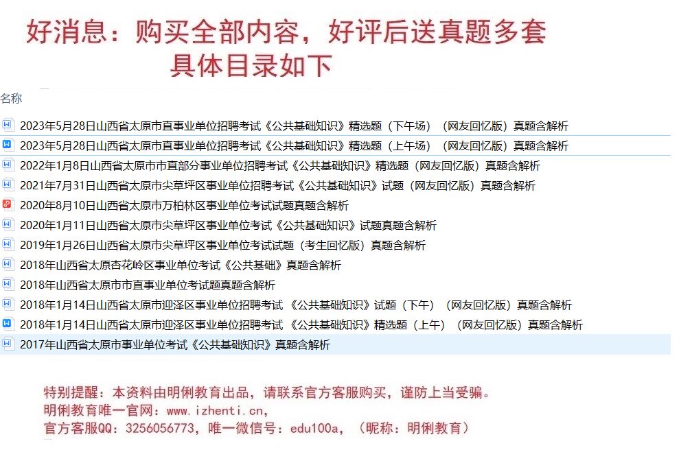 资料名称: 2024太原市杏花岭区事业单位招聘综合知识题库资料送太原真题
