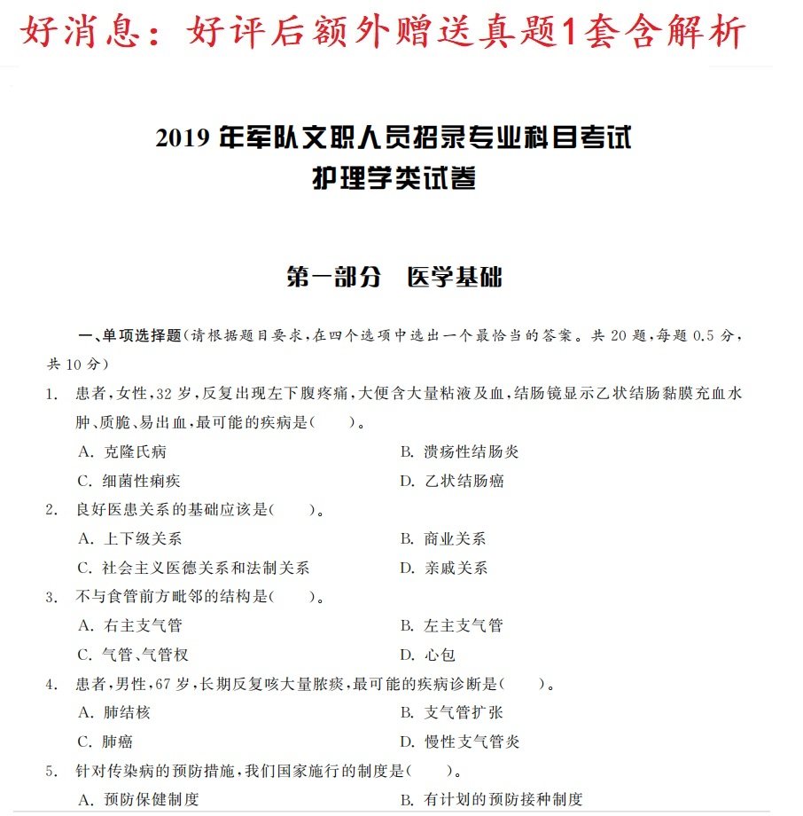 2023军队文职人员全军招聘考试医学类护理学专业知识科目题库真题
