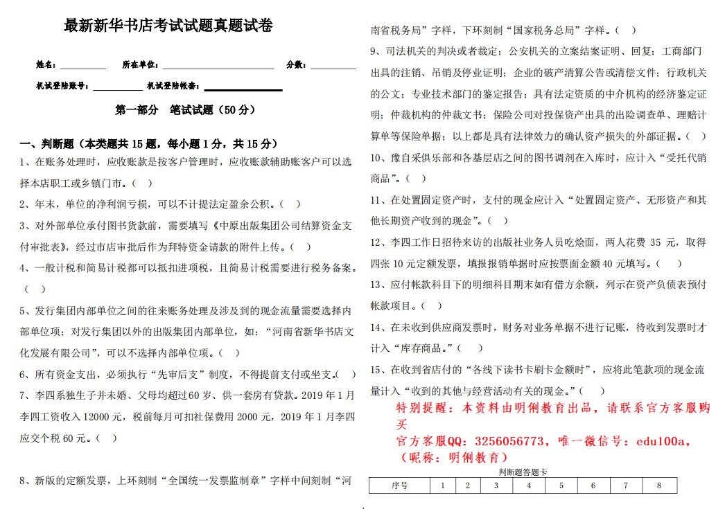1、购买本资料后,可以加入VIP考试交流群,享受资料免费更新和考前预测服务。