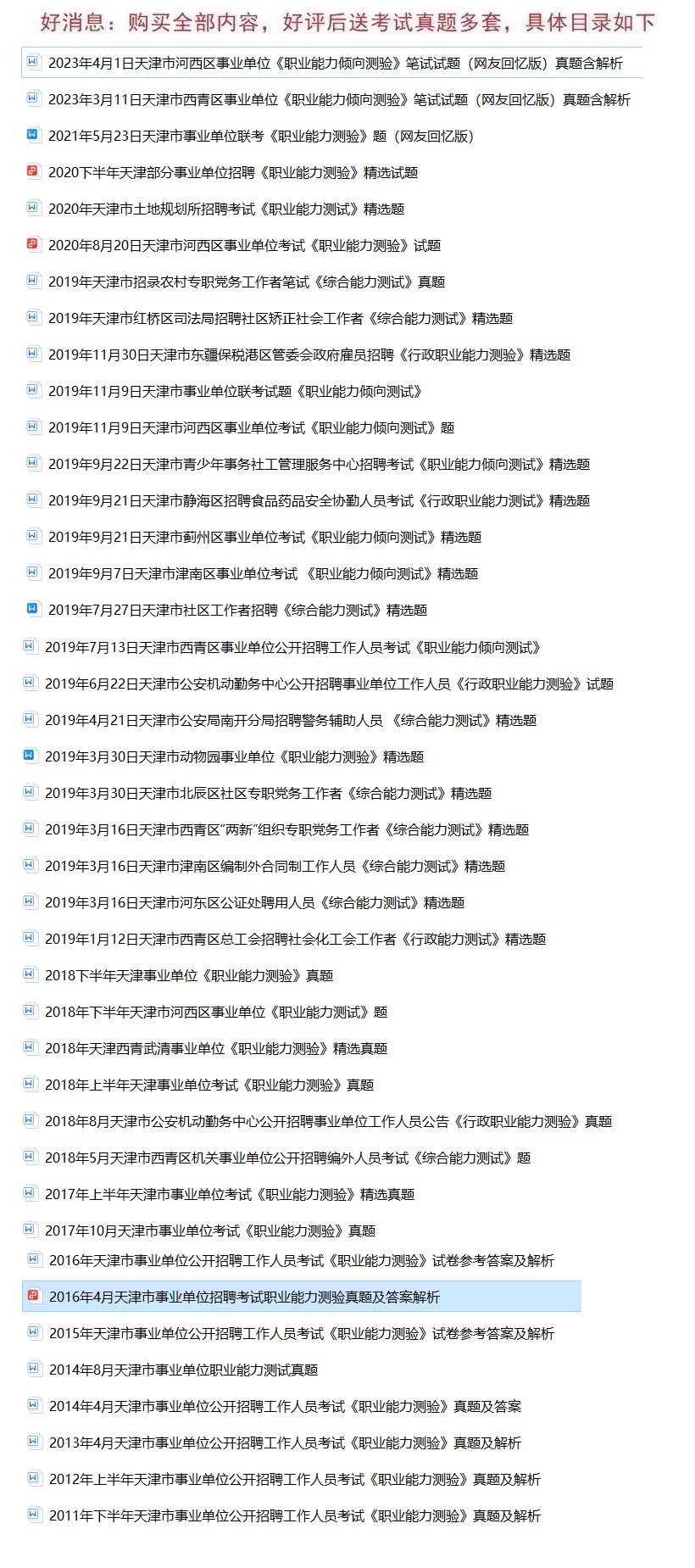 资料名称: 2024天津医科大学肿瘤医院管理岗职业能力测试题库送天津真题